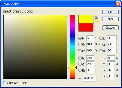 The Photoshop Color Picker allows you to create color by six means (normally, you will work in Photoshop in the RGB color mode)